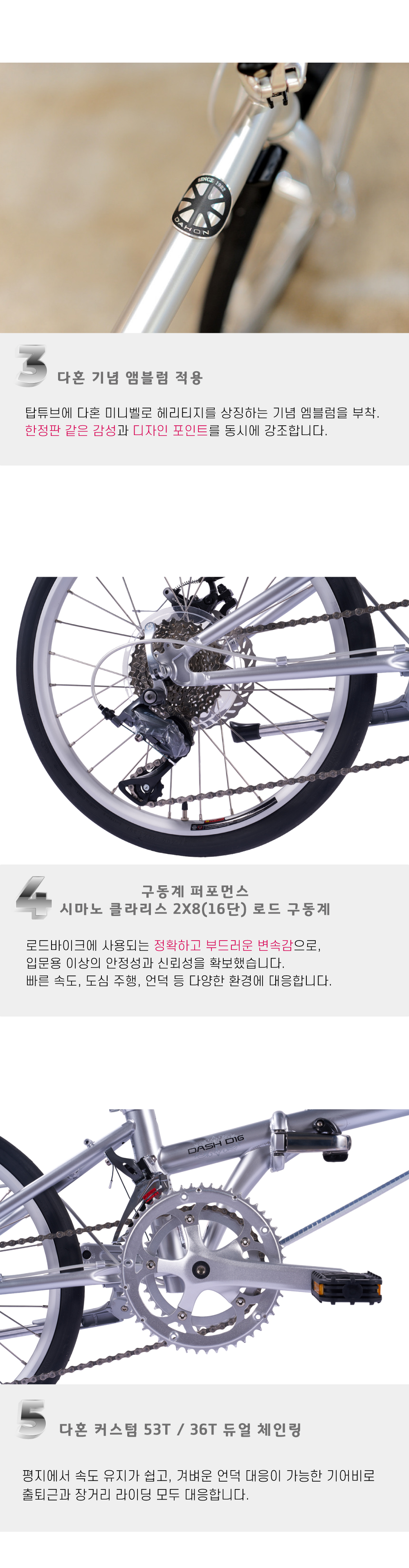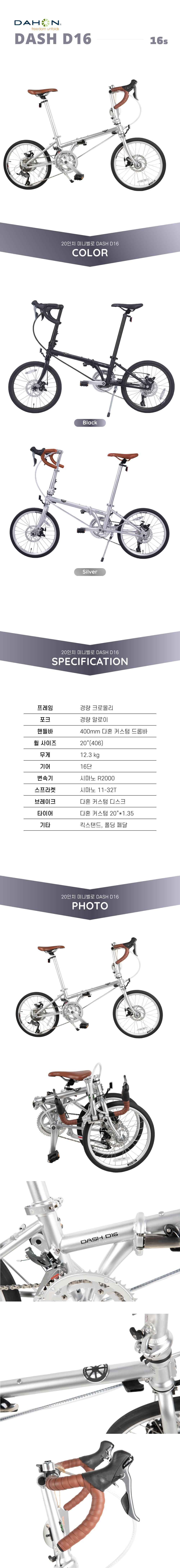 다혼 커스텀 디스크 브레이크품명DAHON DASH D16프레임크로몰리 프레임포크경량 알로이변속기시마노 소라 R2000브레이크다혼 커스텀 디스크 브레이크휠셋20인치 406무게12.3kg인증번호B401R249-25001 / 한국건설생활환경시험연구원(KCL)제조사 / 수입사DAHON (중국)품질보증소비자보호법시행령에 의한 품질보증기타기타 사항은 상세페이지 참조* 이 규격은 제조사 사정으로 예고없이 변경될 수 있습니다.
