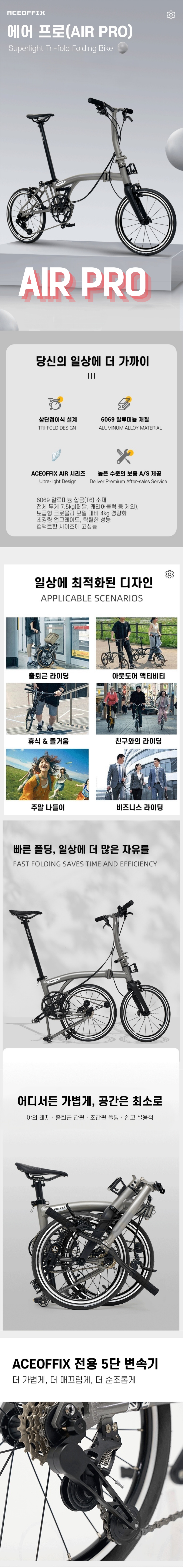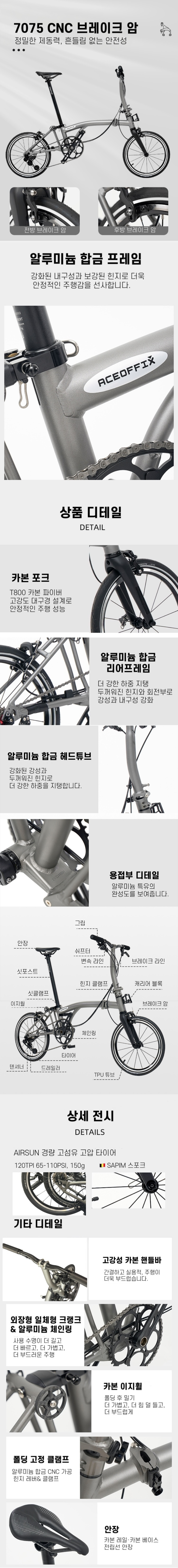 기본형 약 7.8kg품명Aceoffix AIR PRO프레임6069 알루미늄 프레임포크T800 카본변속기트라이폴드 전용 변속기브레이크듀얼피벗 캘리퍼 브레이크휠셋스트레이트 휠세무게기본형 약 7.8kg / 리어렉 머드가드 포함 약 8.4kg제조사 / 수입사Aceoffix (중국)품질보증소비자보호법시행령에 의한 품질보증기타기타 사항은 상세페이지 참조* 이 규격은 제조사 사정으로 예고없이 변경될 수 있습니다.