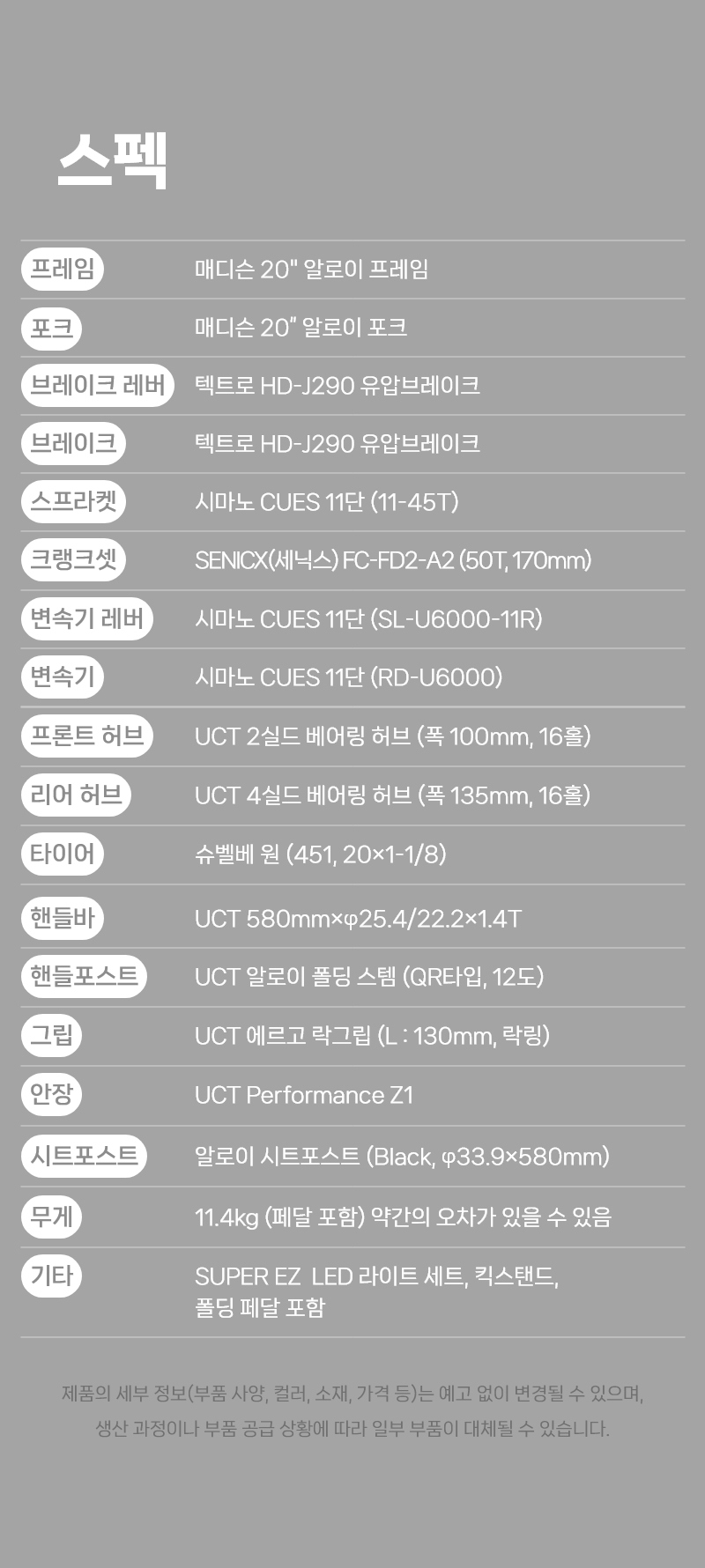 * 이 규격은 제조사 사정으로 예고없이 변경될 수 있습니다.