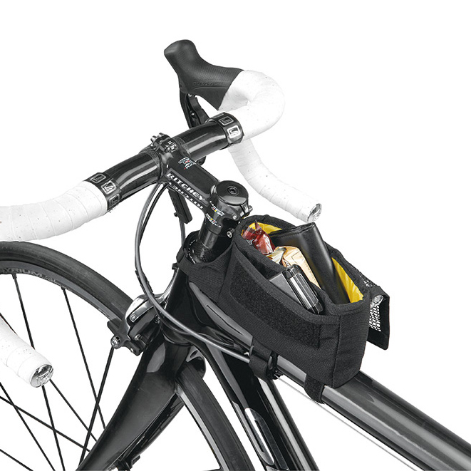 트라이백 라지TriBag은 자전거 탑튜브에 빠르게 장착되어 에너지 바나 필수 소지품을 간편하게 꺼낼 수 있는 수납 공간을 제공합니다.