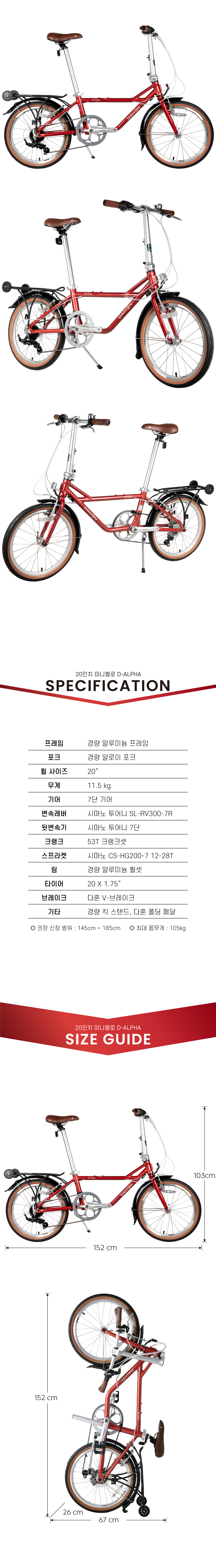 올드 다혼 복각판품명DAHON D-ALPHA프레임경량 알루미늄 프레임포크경량 알로이 포크휠셋 휠셋무게12.12kg추천신장145~185cm허용체중105kg인증번호B401R226-24001 / 한국건설생활환경시험연구원(KCL)제조사 / 수입사DAHON (중국)품질보증소비자보호법시행령에 의한 품질보증기타기타 사항은 상세페이지 참조* 이 규격은 제조사 사정으로 예고없이 변경될 수 있습니다.