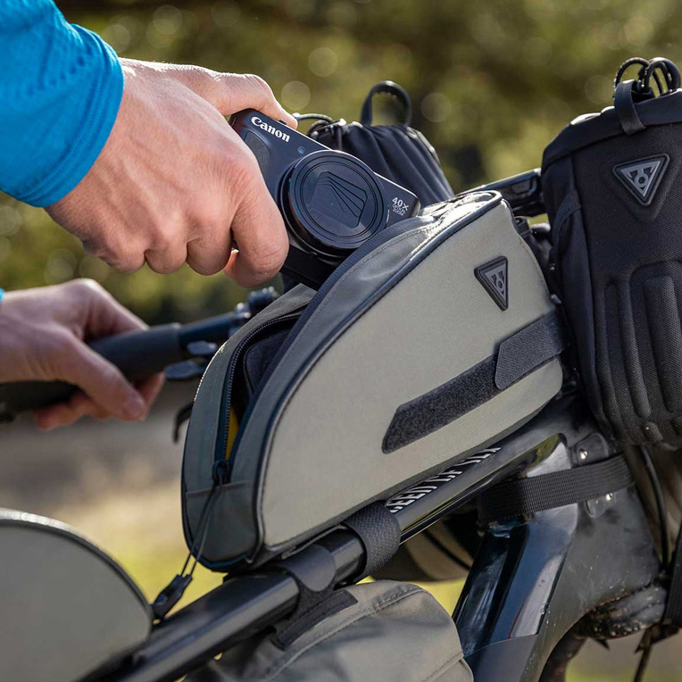 TopLoader는 탑 튜브에 장착하는 대용량 가방으로, 에너지바, 휴대폰, 지갑, 공구 등 자주 사용하는 필수 소지품에 빠르고 쉽게 접근할 수 있도록 설계되었습니다.